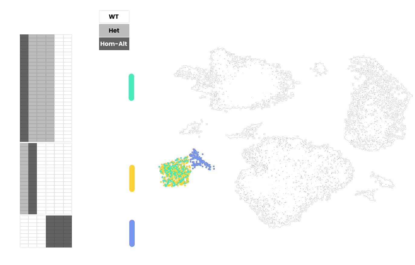 Compare wild-type and variant cells to uncover genotype-specific expression programs