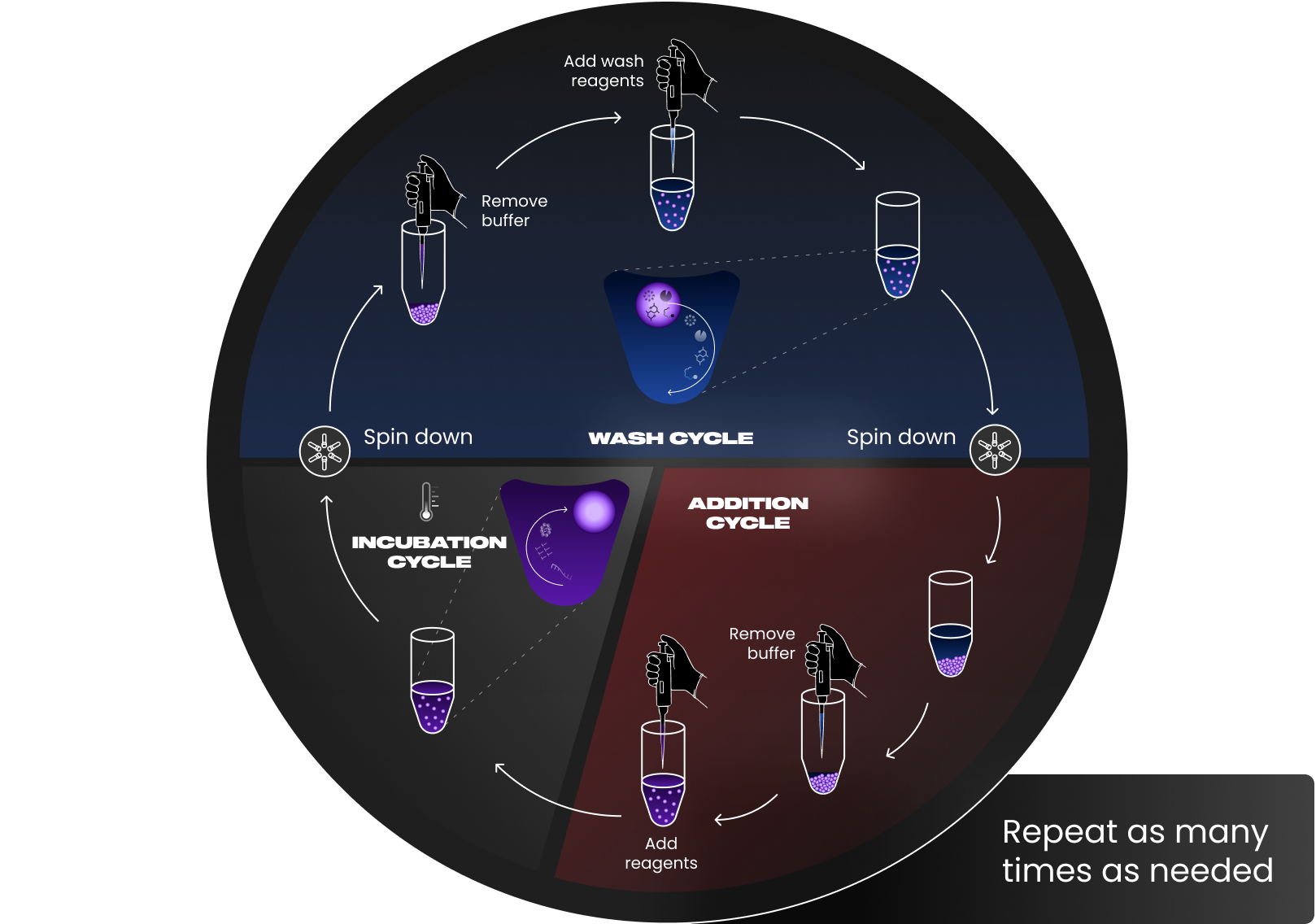 In contrast to droplet-based systems, SPCs allow incompatible reactions (e.g. lysis and amplification) to be decoupled by removing previous reaction components through simple washing, ensuring each reaction occurs under optimal conditions.